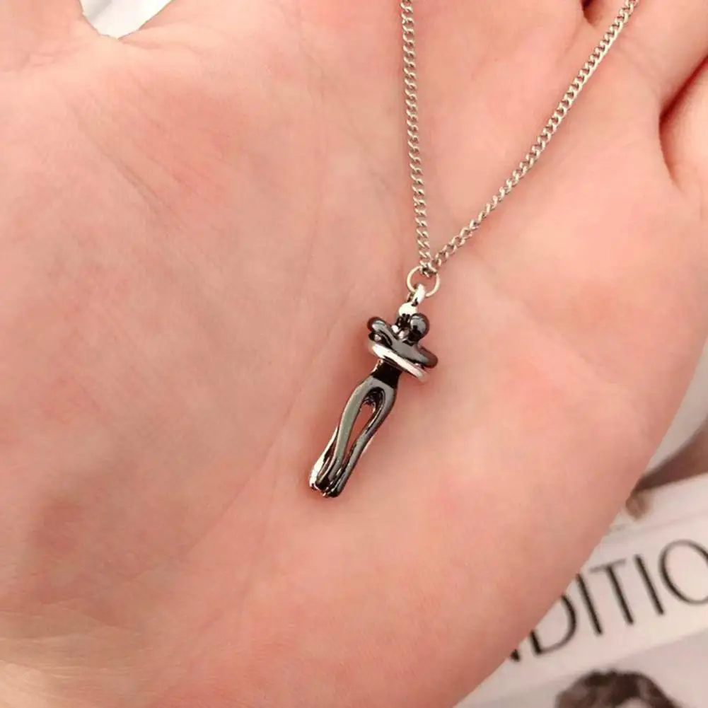 Hip Hop Embrace Couple Pendant Necklace Adjustable Length Him Her Hugging Pendant Necklace Anniversary Jewelry Valentine Day Gift